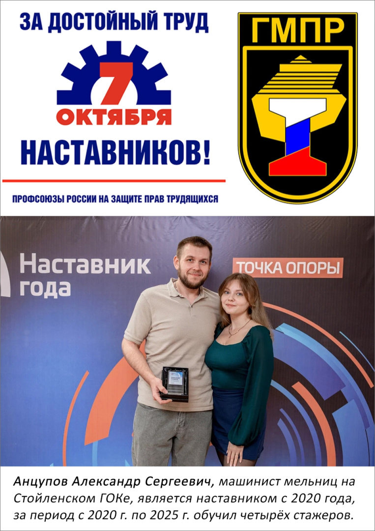 Курская областьПрофсоюзная организация Михайловского ГОКа приняла участие в акции под логотипом "За достойный труд наставников!". Награждения наставников за ответственную работу и активную позицию в воспитании новых кадров проходили как на торжественных мероприятиях, так и в подразделениях.